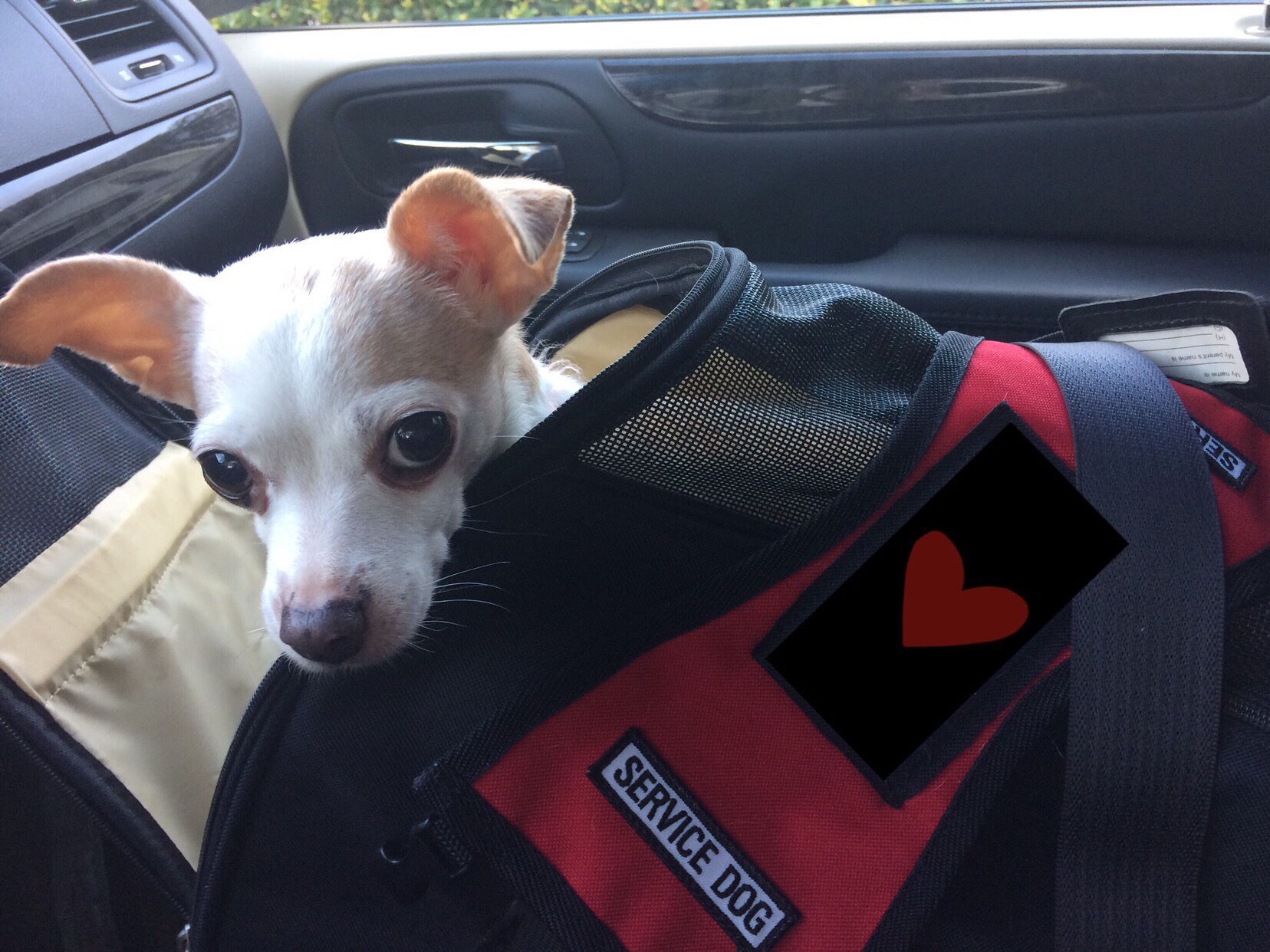Hi, my name is Peanut and I am a registered emotional support animal, or ESA. There were no vests in my size for an ESA, and so I have a service dog vest with an ID card in the pocket which shows that I am an ESA. With the proper documentation, such as a letter from your person’s doctor, we are able to go to many places!
